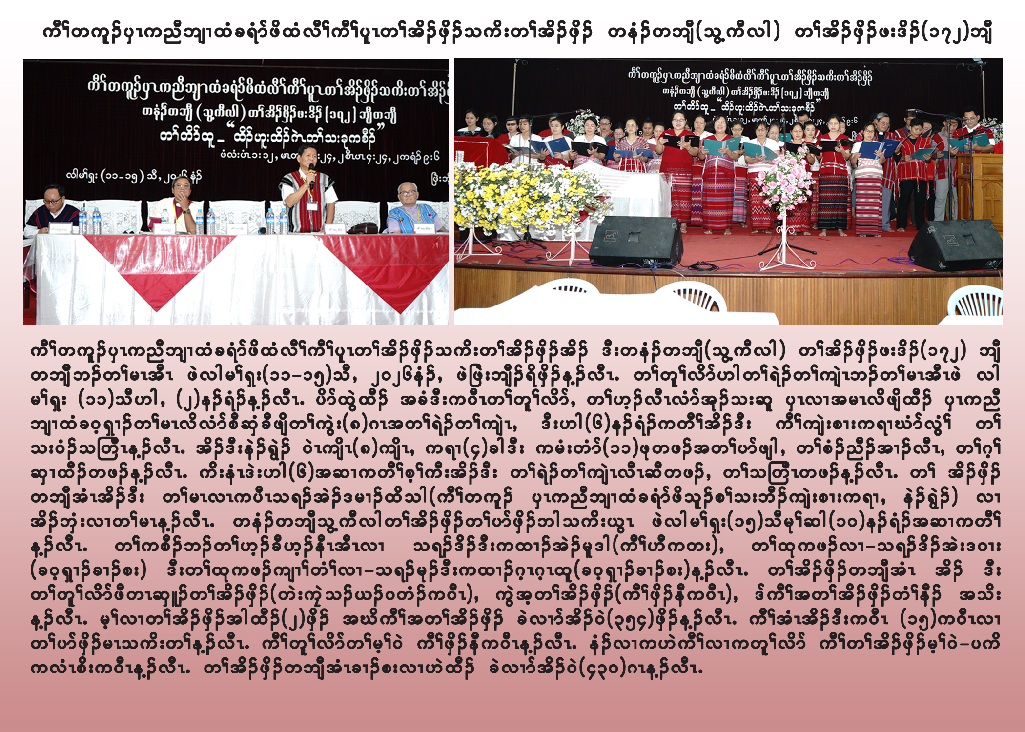 ၦၤကညီဘျၢထံခဝ့ၡၢၣ်ႇ တၢ်ဒုးဒိၣ်ထီၣ်ထီထီၣ်ခိၣ်နၢ်ဝဲၤကျိၤ အိၣ်ဒီးတၢ်မၤလိ လၢအမ့ၢ် Spiritual Leadership တၢ်မၤလိဖဲ ၅.၃.၂ဝ၂၆ အနံၤႇ တၢ်လီၢ်မ့ၢ်ဖဲ (၃၉၆) ခဝ့ၡၢၣ်ဝဲၤလီၢ်ႇ တၢ်အိၣ်ဖှိၣ်အဒၢး န့ၣ်လီၤ. ၦၤဟဲထီၣ်တၢ်မၤလိတဖၣ်မ့ၢ်ခဝ့ၡၢၣ်ဝဲၤလီၢ် ၦၤမၤသကိးတၢ်တဖၣ်ခဲလၢ၁်အိၣ်ဝဲ (၁၆)ဂၤ ဒီး ၦၤသိၣ်လိတၢ်မ့ၢ်ဝဲ သရၣ်မုၣ်ဒိၣ်ဒီးကထၢၣ်စ့လွဲၣ်ဝါန့ၣ်လီၤ. တၢ်မၤလိတဘျီအံၤ မ့ၢ်တၢ်လၢအဂ့ၤဝဲ ဒိၣ်မး လၢခိၣ်နၢ်သ့ၣ်တဖၣ်အတၢ်ဒိၣ်ထီၣ် ထီထီၣ်လၢနီၢ်သးအတၢ်ပ၁်သူၣ်ပ၁်သးႇ အတၢ်ဆိကမိၣ် သ့ၣ်တဖၣ်အဂီၢ်အဃိ မ့ၢ်တၢ်ကဲဘျုးလၢ ခါဆူညါခိၣ်နၢ်တဖၣ်အဂီၢ်န့ၣ်လီၤ.