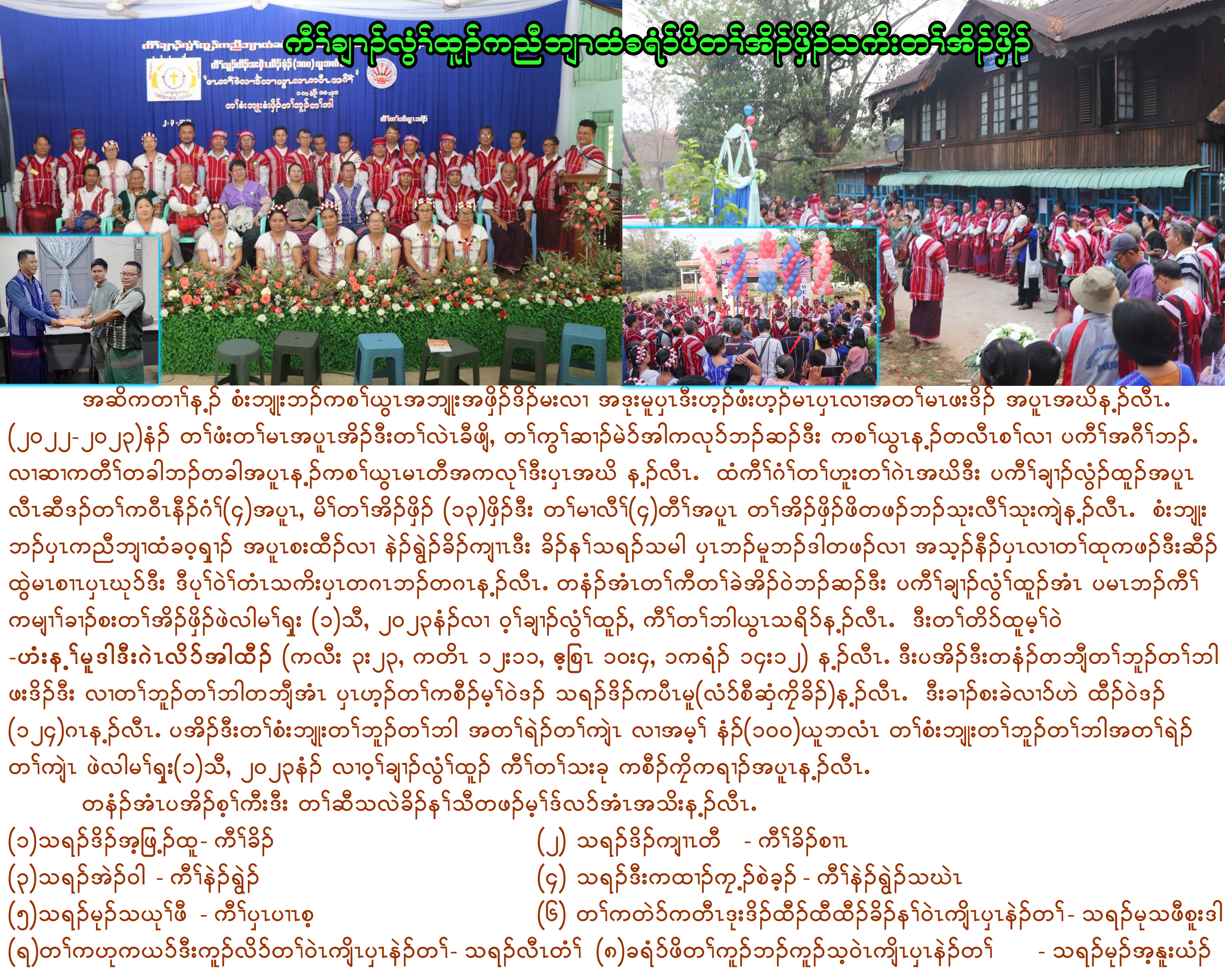 တၢ်မၤလိအံၤဘၣ်တၢ်စးထီၣ်အီၤဖဲ ၂၆.၆.၂ဝ၂၃ နံၣ် ဟါ ၄း၃ ဝနၣ်ရံၣ်န့ၣ်လီၤ. ၦၤပၢၤလီၢ်ဆ့ၣ်နီၤမ့ၢ် သရၣ်ဒီးကထၢၣ် န့ၢ်လ့အီၣ်ႇ တၢ်ကစီၣ်ဟ့ၣ်ဂံၢ်ဟ့ၣ်ဘါလၢ သရၣ်မုၣ်ၡံထၣ်ဖီ(ၦၤပၢၤစ့ႇ ၦၤကညီဘျၢထံခဝ့ၡၢၣ်) တၢ်ထုကဖၣ်အလၢအၦဲၤလၢ သရၣ်လ့ၤဝံ (တၢ်သးခုကစီၣ်အၦၤနဲၣ်တၢ်ႇ ကီၢ်ပကိတကူၣ်) ဒီးတၢ်ဘိးဘၣ်သ့ၣ်ညါဒီးတၢ်ဆိၣ်ဂ့ၤပျၢ်လၢ သရၣ်ဒိၣ်အဲးဒဝၢး (တၢ်သးခုကစီၣ်ဒီးမံးၡၢၣ်ဝဲၤကျိၤၦၤနဲၣ်တၢ်ႇ ၦၤကညီဘျၢထံခဝၡၢၣ်)တဖၣ်န့ၣ်လီၤ.