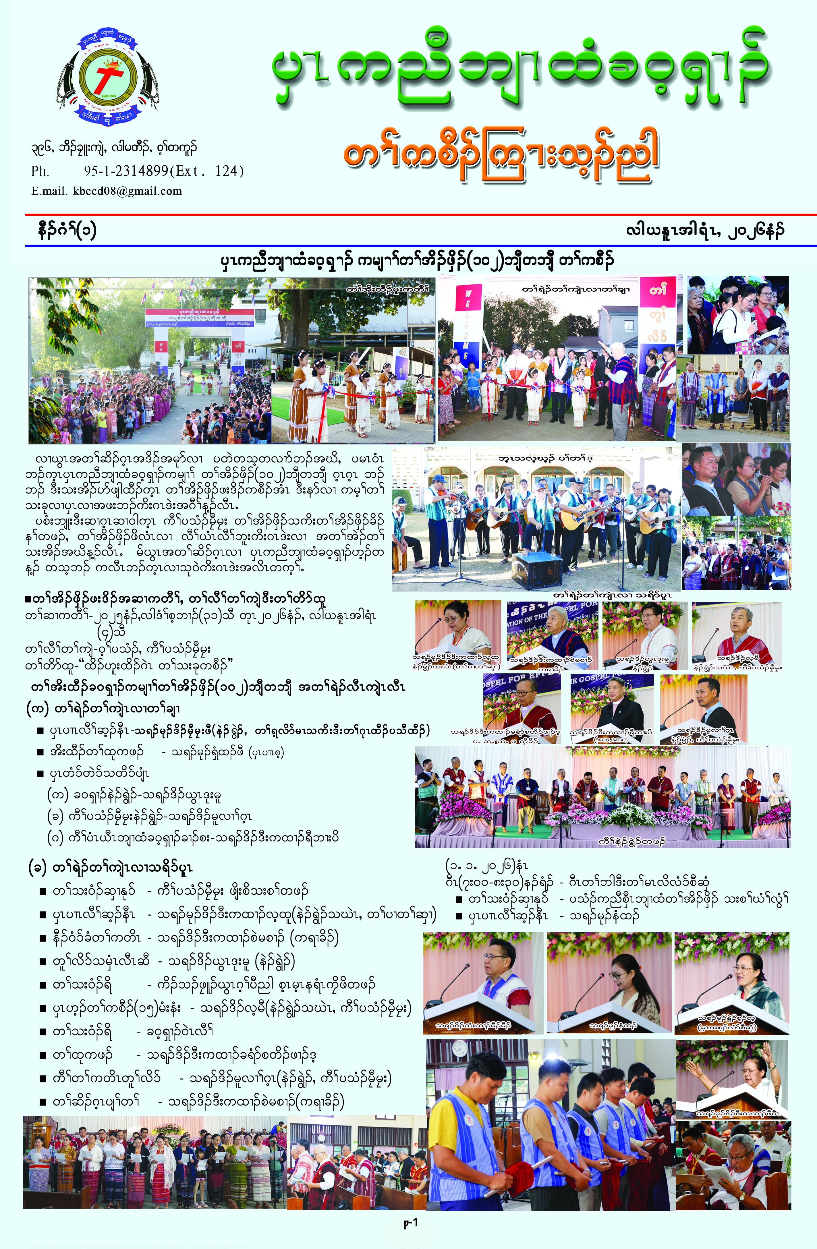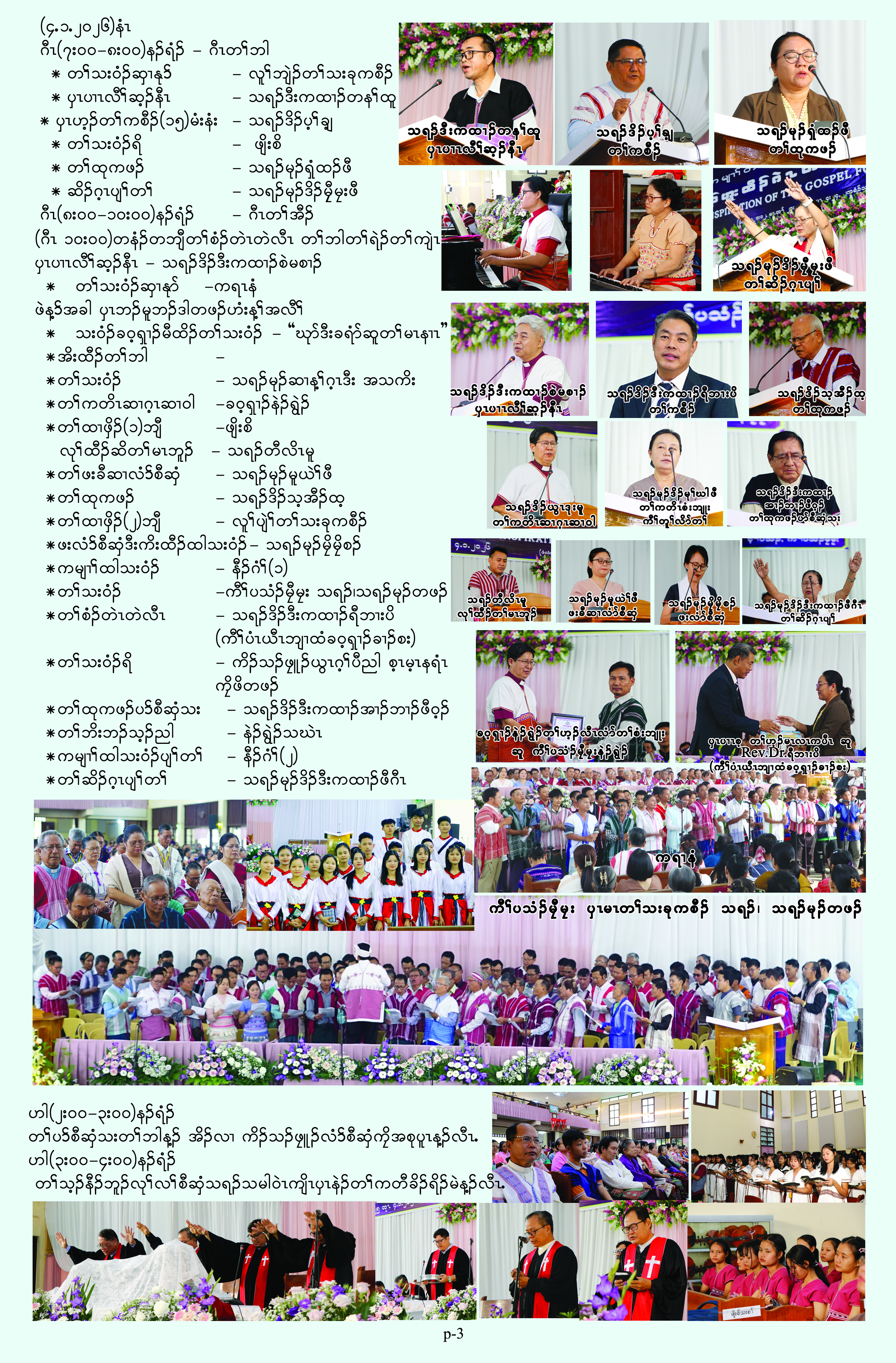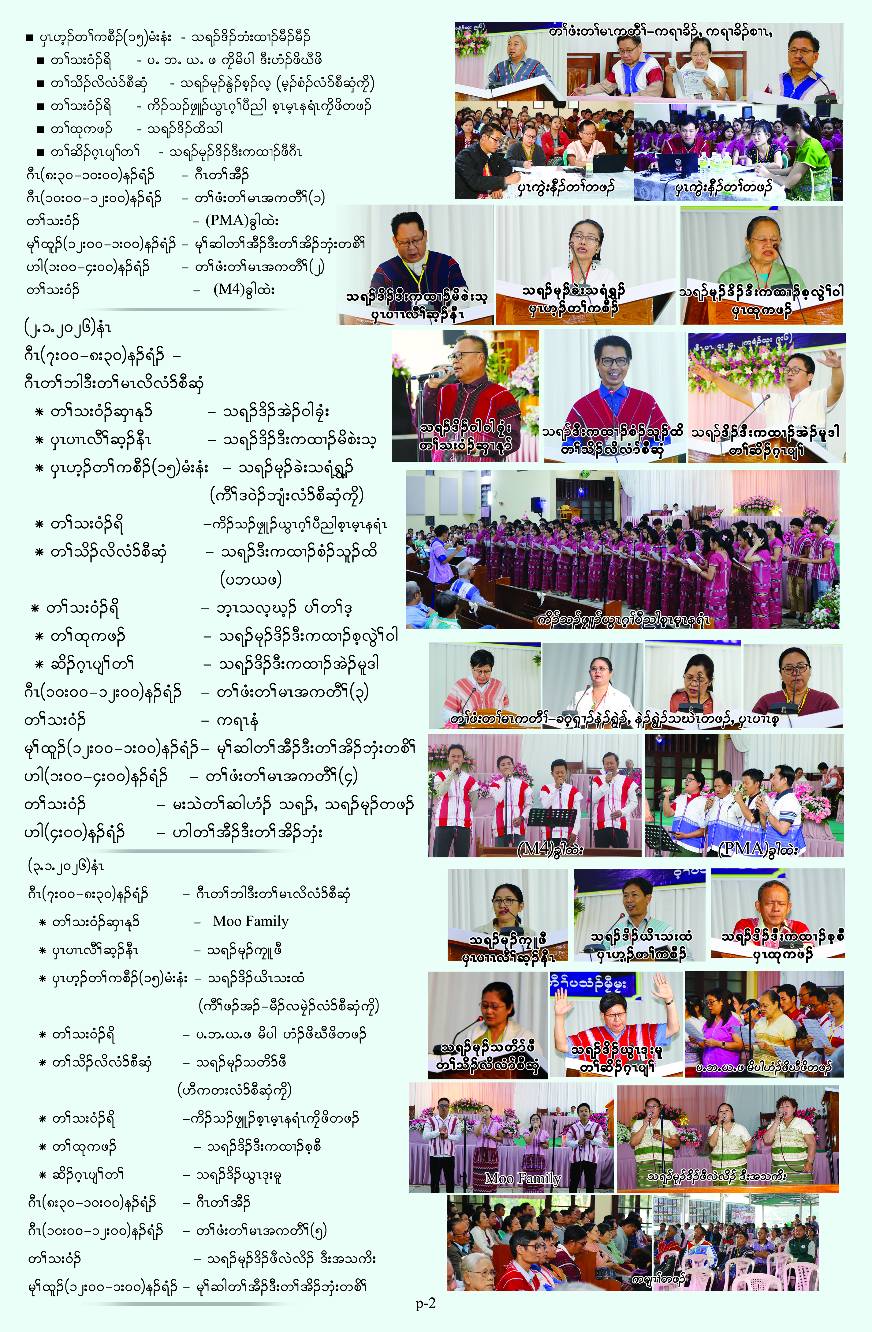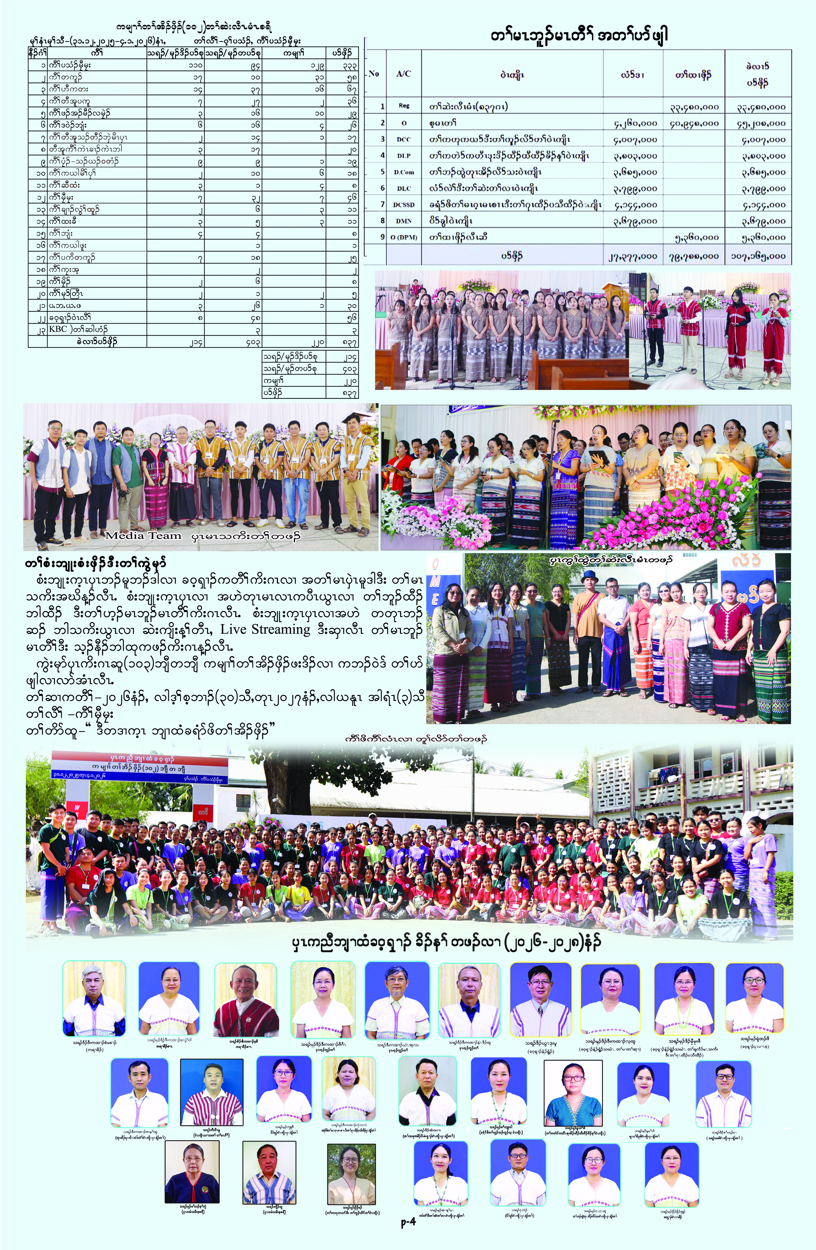 ၦၤကညီဘျၢထံခဝ့ၡၢၣ် တၢ်သးခုကစီၣ်ဒီးမံးၡၢၣ်ဝဲၤကျိၤ အိၣ်ဒီးတၢ်မၢဖိတၢ်မၤလိ(၆)ဘျီတဘျီ လါအီကူာ်(၄)သီ တုၤ (၂၂)သီႇ ၂ဝ၂၅နံၣ်ဖဲ  ကီၢ်တကူၣ်ကျဲးစၢးကရၢတၢ်သူၣ်ထီၣ်န့ၣ်လီၤ. တၢ်မၤလိတဘျီအံၤ တၢ်သိၣ်လိလၢ ဘၣ်တၢ်ဟ့ၣ်ခီဟ့ၣ်နီၤအီၤတဖၣ်မ့ၢ်ဝဲ- တၢ်မၤလိလံာ်စီဆှံ-သရၣ်မုၣ်ရံနၣ်ဖီႇ သရၣ်ဒီးကထၢၣ်န့ၢ်လ့အီၣ်ႇ သရၣ်မုၣ်သီအဲၣ်ႇ ''တၢ်အုၣ်က့ၤခီၣ်က့ၤ'' လၢ သရၣ်ဒိၣ်ဖိထူႇ ''CCMP'' လၢ သရၣ်ဒိၣ်လးဖ့ၣ်ႇ  ''တၢ်သးခုကစီၣ်အကျဲကူၣ်နၢၤ'' လၢ သရၣ်ဒိၣ်မ့အီၣ်ထိႇ ''မုၢ်နံၤခံကတၢၢ်တၢ်ကမၤအသးတဖၣ်''လၢ သရၣ်ဒိၣ်တ့ၣ်စီႇ ''နံၣ်ကယၤ(၂၁)တၢ်တၤဒီး တၢ်မၤတၢ်သးခုကစီၣ်တၢ်မၤ'' လၢ သရၣ်မုၣ်ဒီးကထၢၣ်တ့ၣ်စံၣ်မိႇ ''နီၢ်တဂၤတၢ်မၤတၢ်သးခုကစီၣ်'' လၢ သရၣ်လွါမိထဲးအီၣ်ႇ ''Praise and Worship'' လၢသရၣ်သးဂ့ၤကိလ်တဖၣ်န့ၣ်လီၤ. ကီၢ်(၁၁)ဘ့ၣ်ခၢၣ်စး ၦၤဟဲထီၣ်အိၣ်ဝဲ(၁၅)ဂၤန့ၣ်လီၤ.