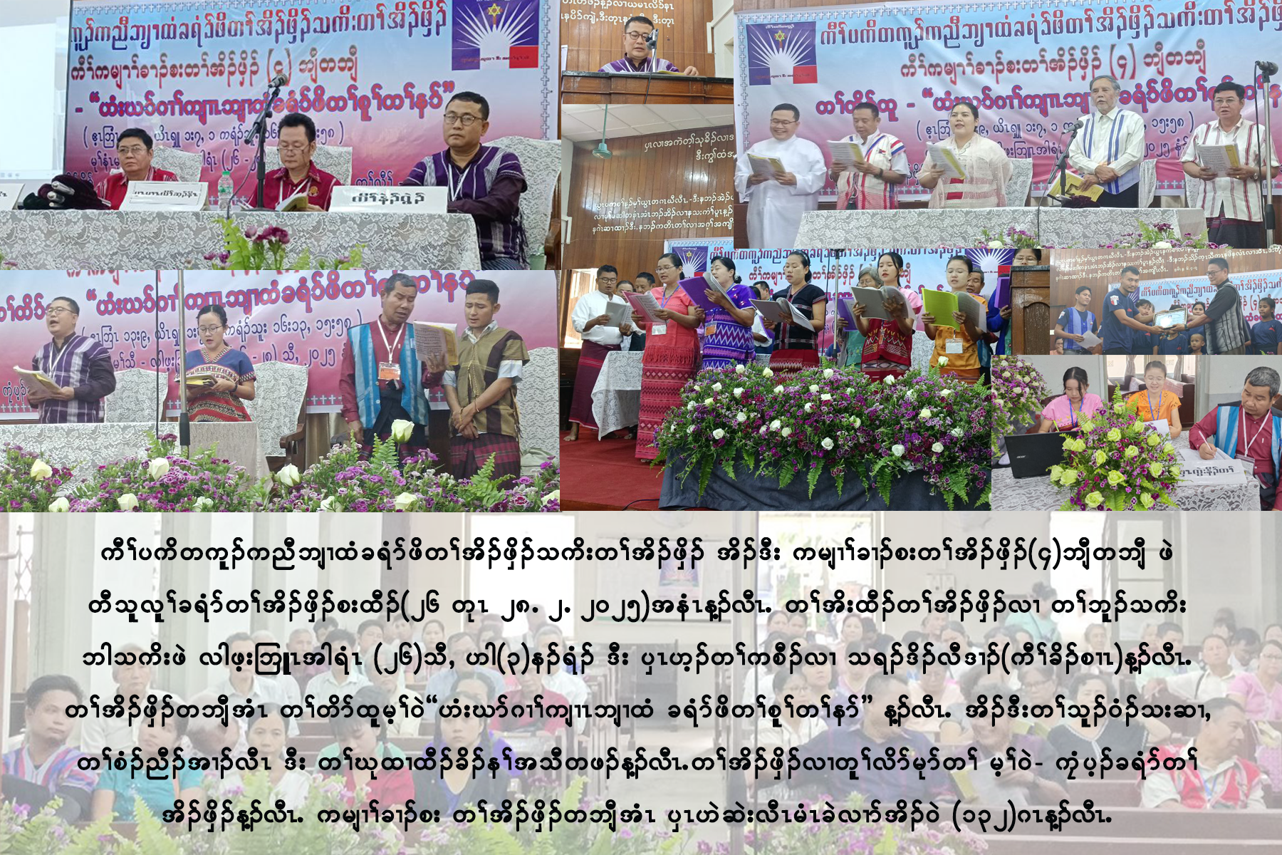 ကီၢ်တီအူပကူၦၤကညီဘျၢထံတၢ်အိၣ်ဖှိၣ်သကိးတၢ်အိၣ်ဖှိၣ် အိၣ်ဒီးကမျၢၢ်ခၢၣ်စးတၢ်အိၣ်ဖှိၣ်(၁၆၉)ဘျီတဘျီႇ ဘၣ်တၢ်မၤအီၤဖဲ ကစၢၢ်ဒိၣ်ကညီဘျၢထံတၢ်အိၣ်ဖှိၣ်ႇ ပၢၤထံးကဝီၤႇ ကီၢ်တီအူပကူန့ၣ်လီၤ. တၢ်အိၣ်ဖှိၣ်အံၤဘၣ်တၢ်စးထီၣ်မၤအီၤဖဲ လါမၢ်ၡး(၂၁)သီ တုၤ(၂၃)သီႇ ၂ဝ၂၅နံၣ်န့ၣ်လီၤ. တၢ်အိၣ်ဖှိၣ်တဘျီအံၤ တၢ်တိာ်ထူမ့ၢ်ဝဲ-''စူၢ်နာ်ဂၢၢ်ကျၢၤယွၤတၢ်အၢၣ်လီၤ'' န့ၣ်လီၤ. တၢ်အိးထီၣ်တၢ်အိၣ်ဖှိၣ်အမူးဘၣ်တၢ်မၤ အီၤဖဲ(၂၁)သီဟါ(၆း၃ဝ-၇း၃ဝ)နၣ်ရံၣ်န့ၣ်လီၤ. အိၣ်ဒီးတၢ်မၤလိလံာ်စီဆှံလၢ (၂၂)သီႇ ဂီၤ(၇းဝဝ-၈းဝဝ)နၣ်ရံၣ် ဒီး ဘၣ်တၢ်ဟ့ၣ်ခီဟ့ၣ်နီၤလီၤ တၢ်လၢ သရၣ်မုၣ်ဒီးကထၢၣ်မူမုၢ်ဝါ(ၦၤကညီဘျၢထံခဝ့ၡၢၣ် ယွၤဂ့ၢ်ပီညါ¬ဝဲၤကျိၤႇ ၦၤနဲၣ်တၢ်)န့ၣ်လီၤ. တၢ်ပာ်ဂၢၢ်ပာ်ကျၢၤ ကီၢ်တၢ်စံၣ်ညီၣ်အၢၣ် လီၤတဖၣ်ႇ ကီၢ်တၢ်ဖံးတၢ်မၤန့ၣ်လီၤ. လါမၢ်ၡး(၂၃)သီႇ ဂီၤ(၇းဝဝ-၉းဝဝ)နၣ်ရံၣ် အိၣ်ဒီး ကီၢ်ပိာ်မုၣ်ဝဲၤကျိၤ(၁၂၅)နံၣ် တၢ်စံးဘျုးတၢ်ဘူၣ်တၢ် ဘါတၢ်ရဲၣ်တၢ်ကျဲၤန့ၣ်လီၤ. တၢ်စံးဘျုးတဘျီအံၤ အိၣ်ဒီးတၢ်မၤလၤကပီၤခိၣ်နၢ်စးထီၣ် နံၣ်တကယၤယူၤဘလံၤဝံၤအလီၢ်ခံတဖၣ်န့ၣ်လီၤ. လၢတၢ်ဘူၣ်တၢ်ဘါကတီၢ် ၦၤဟ့ၣ်တၢ်ကစီၣ်မ့ၢ်ဝဲ- သရၣ်မုၣ်ကၠူဖီ(ၦၤကညီဘျၢထံခဝ့ၡၢၣ်ပိာ်မုၣ်ဝဲၤကျိၤႇ ၦၤနဲၣ်တၢ်)န့ၣ်လီၤ. ဂီၤ(၁ဝးဝဝ-၁၂းဝဝ)နၣ်ရံၣ် လၢကီၢ်တၢ်ဘါဖးဒိၣ် ကတီၢ်အိၣ်ဒီး တၢ်တူၢ်လိာ်တၢ်အိၣ်ဖှိၣ်အသီတဖုလၢအမ့ၢ်-(လၢၢ်ခုၣ်နိၣ်)ႇ ဒီးကီၢ်အတၢ်အိၣ်ဖှိၣ်ခဲလၢာ် အိၣ်ဝဲ(၁၆၉)ဖှိၣ်န့ၣ်လီၤ. ပိာ်ထဲထွီၣ်အခံလၢ တၢ်မၤလၤကပီၤ သရၣ်ကၠီရိခိၣ်(ကီၢ်ၦၤစဲးစ့)လၢ အိၣ်ဘှံးက့ၤလၢတၢ်မၤန့ၣ်လီၤ. အိၣ်ဒီးတၢ်မၤလၤကပီၤ ကီၢ်ဖိလံၤလၢ အဖျိထီၣ် (Doctor of Ministry) ခံဂၤလၢအမ့ၢ် သရၣ်မုၣ်ဒီးကထၢၣ်မူမုၢ်ဝါ ဒီး သရၣ်မုၣ်ဒီးကထၢၣ်ဂ့ၤဂ့ၤထူတဖၣ်န့ၣ်လီၤ.