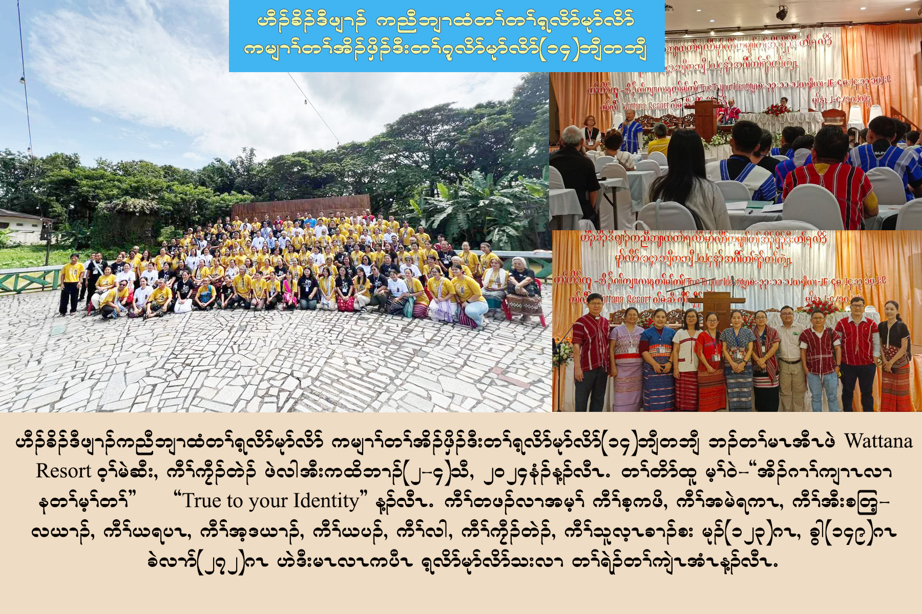 ဟီၣ်ခိၣ်ဒီဖျၢၣ်ကညီဘျၢထံတၢ်ရ့လိာ်မုာ်လိာ် ကမျၢၢ်တၢ်အိၣ်ဖှိၣ်ဒီးတၢ်ရ့လိာ်မုာ်လိာ်(၁၄)ဘျီတဘျီ ဘၣ်တၢ်မၤအီၤဖဲ Wattana Resort ဝ့ၢ်မဲဆီးႇ ကီၢ်ကၠီၣ်တဲၣ် ဖဲလါအီးကထိဘၢၣ်(၂-၄)သီႇ ၂ဝ၂၄နံၣ်/ တၢ်တိာ်ထူ မ့ၢ်ဝဲ-"အိၣ်ဂၢၢ်ကျၢၤလၢ နတၢ်မ့ၢ်တၢ်" "True to your Identity"န့ၣ်လီၤ. ကီၢ်တဖၣ်လၢအမ့ၢ် ကီၢ်စ့ကဖိႇ ကီၢ်အမဲရကၤႇ ကီၢ်အီးစတြ့လယၢၣ်ႇ ကီၢ်ယရပၤႇ ကီၢ်အ့ဒယၢၣ်ႇ ကီၢ်ယပၣ်ႇ ကီၢ်လါႇ ကီၢ်ကၠီၣ်တဲၣ်ႇ ကီၢ်သူလ့ၤခၢၣ်စး မုၣ်(၁၂၃)ဂၤႇ ခွါ(၁၄၉)ဂၤ ခဲလၢာ်(၂၇၂)ဂၤ ဟဲဒီးမၤလၤကပီၤ ရ့လိာ်မုာ်လိာ်သးလၢ တၢ်ရဲၣ်တၢ်ကျဲၤအံၤ/အံၤ ၦၤသိၣ်လိလံ၁်စီဆှံတဖၣ်မ့ၢ်ဝဲ သရၣ်ဒိၣ်ဒီးကထၢၣ်ဖျါစိႇ သရၣ်ဒိၣ်ယိၤသးထံဒီး သရၣ်မုၣ်လါဖီ ဒီးၦၤဟ့ၣ်ထီၣ်တၢ်ဂ့ၢ်တဖၣ်မ့ၢ်ဝဲ သရၣ်မုၣ်ဒိၣ်ဒီးကထၢၣ်စ့လွဲၢ်ဝါႇ သရၣ်ဒီးကထၢၣ်စံၣ်သူၣ်ထိႇ ဒီး သရၣ်မုၣ်မူခိၣ်ဖီ