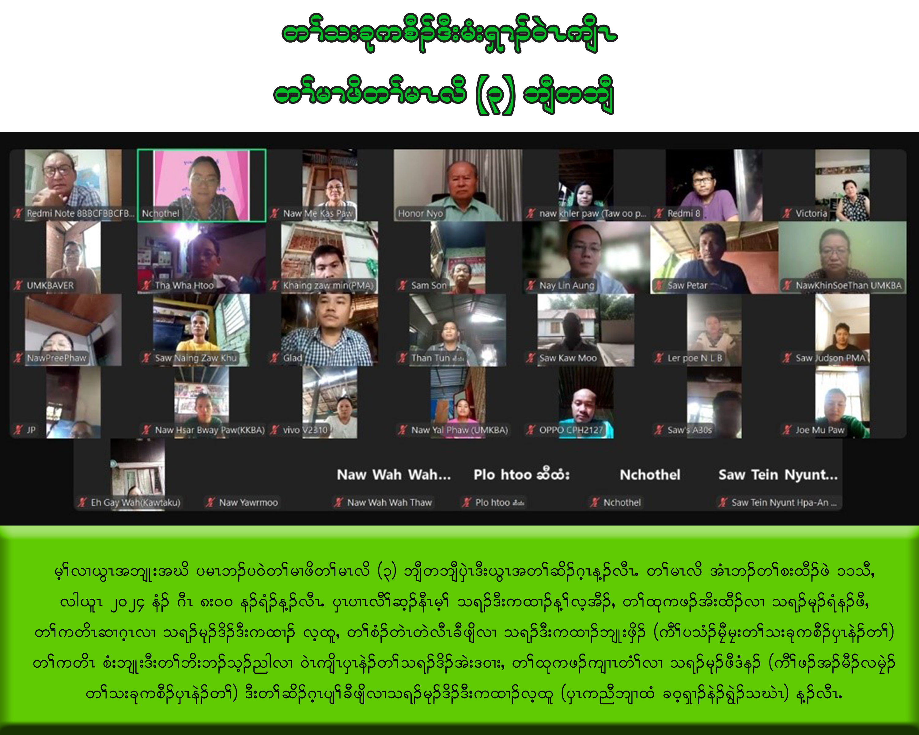 တၢ်မၤလိအံၤဘၣ်တၢ်ပျၢ်က့ၤအီၤဖဲ ၂၁.၆.၂ဝ၂၄ ဖဲတၢ်မၤလိဝံၤန့ၣ်လီၤ. ၦၤပၢၤလီၢ်ဆ့ၣ်နီၤမ့ၢ် သရၣ်မုၣ်ခၠိၣ်သဲႇ သရၣ်မုၣ်မံကၣ်အိးထီၣ်တၢ်ဘါႇ သရၣ်မုၣ်၇ှံထၣ်ဖီ (ၦၤကညီဘျၢထံခဝ့ရှၢၣ်ၦၤပၢၤစ့) စံၣ်တဲၤတဲလီၤ ဟ့ၣ်ဂံၢ်ဟ့ၢ်ဘါဆူ တၢ်မၢဖိတဖၣ်ဝံၤ ၦၤလၢအဃ့ဘါထုကတဖၣ်ဒီးဆိၣ်ဂ့ၤပျၢ်က့ၤတၢ်မ့ၢ်သရၣ်ဒိၣ်ဆၣ်မုၢ်နၤ (ကီၢ်ဒဝဲၢ်ဘျံးတၢ်သးခုကစီၣ် ၦၤနဲၣ်တၢ်) န့ၣ်လီၤ.