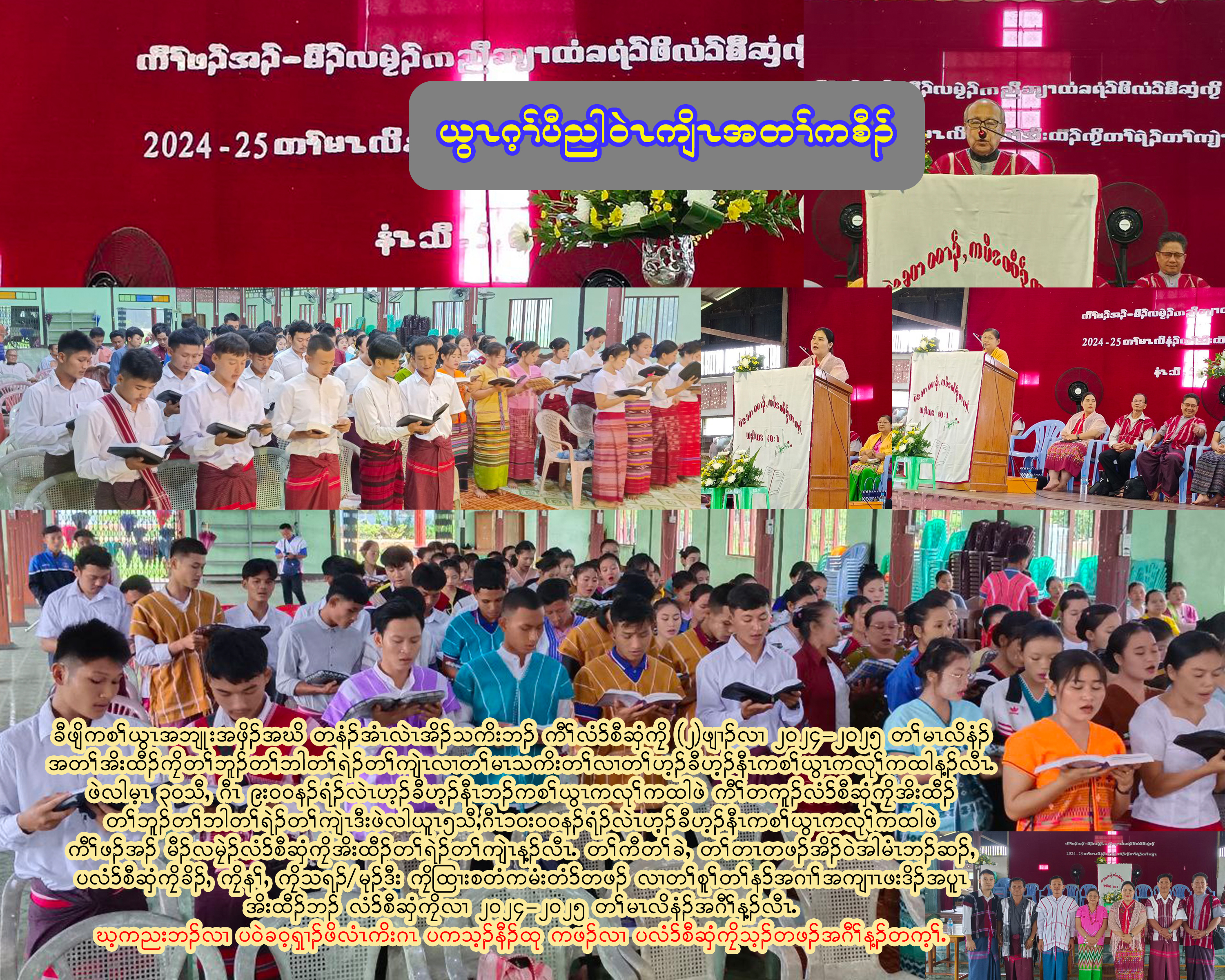 ယွၤဂ့ၢ်ပီညါဝဲၤကျိၤ အိၣ်ဒီးခီဖရဲး (၂)နံၣ်တဘျီ လၢဘၣ်တၢ်မၤအီၤလၢ လံ၁်စီဆှံကၠိသ့ၣ်တဖၣ်လီၤ. ဘၣ်ဆၣ်မ့ၢ်လၢ ထံကီၢ်တၢ်အိၣ်သးသ့ၣ်တဖၣ်အဃိ ပတမၤဘၣ်ခီဖရဲးလၢ မဲ၁်သကိးမဲ၁်ဘၣ်ဆၣ် ကစၢ်ယွၤအိးဟိထီၣ်စ့ၢ်ကီးတၢ်ဆိၣ်ဂ့ၤအကျဲလၢ ပကမၤဘၣ်အီၤလၢ ဆဲးကျိၤန့ၢ်တီၤန့ၣ်လီၤ. တနံၣ်အံၤ ပမၤဘၣ် ခီဖရဲး (၁၄)ဘျီတဘျီဖဲ လါအီးကထိးဘၢၣ် ၂၃-၂၅သီႇ ၂ဝ၂၄ လၢ ဆဲးကျိၤန့ၢ်တီၤဒီး တၢ်တိ၁်ထူမ့ၢ်ဝဲ -လၢကသူၣ်ထီၣ်တၢ်လီၤပှီၢ် ယွၤခ့ၦၤကျဲးစၢးနီၣ်နီၣ် (ဧ့စြၤ ၇း၁ဝႇ နဃ့မယၤ ၂း၁၇-၁၈ႇ ၁ကရံၣ်သူး ၁၅း၅၈) န့ၣ်လီၤ. ဝဲၤကျိၤကၠိ (၁၆)ဖျၢၣ် ကၠိခိၣ်^ကၠိခိၣ်စၢၤဒီးကၠိသရၣ်^မုၣ်ဒီး ကၠိမၤတံၤမၤသကိး လၢအမ့ၢ် ဖုမ့ၢ်စံၣ်လံ၁်စီဆှံကၠိခိၣ်  ခဲလၢ၁် ပ၁်ဖှိၣ်(၈၆)ဂၤ ထီၣ်သကိးတၢ်ရဲၣ်တၢ်ကျဲၤတဘျီအံၤလီၤ. လၢတၢ်အိးထီၣ်တၢ်ရဲၣ်တၢ်ကျဲၤတၢ်ဘါ ကတီၢ် ကွဲမု၁်စ့ၢ်ကီး ခဝ့ၡၢၣ်ခိၣ်နၢ်အိၣ်မူအိၣ်ဒါသ့ၣ်တဖၣ်လၢ တၢ်ကတိၤဆၢဂ့ၤႇ တၢ်ကစီၣ်ႇ တၢ်ထုကဖၣ်ဒီး တၢ်ဆိၣ်ဂ့ၤပျၢ်တၢ်အဂီၢ်လီၤ. တနံၤဘၣ်တနံၤပအိၣ်ဒီး တၢ်မၤလိသကိးလံ၁်စီဆှံ လၢအဘၣ်ထွဲဒီးတၢ်တိ၁်ထူႇ အိၣ်ဒီး သရၣ်^မုၣ်တဖၣ်အတၢ်ဟ့ၣ်ထီၣ်